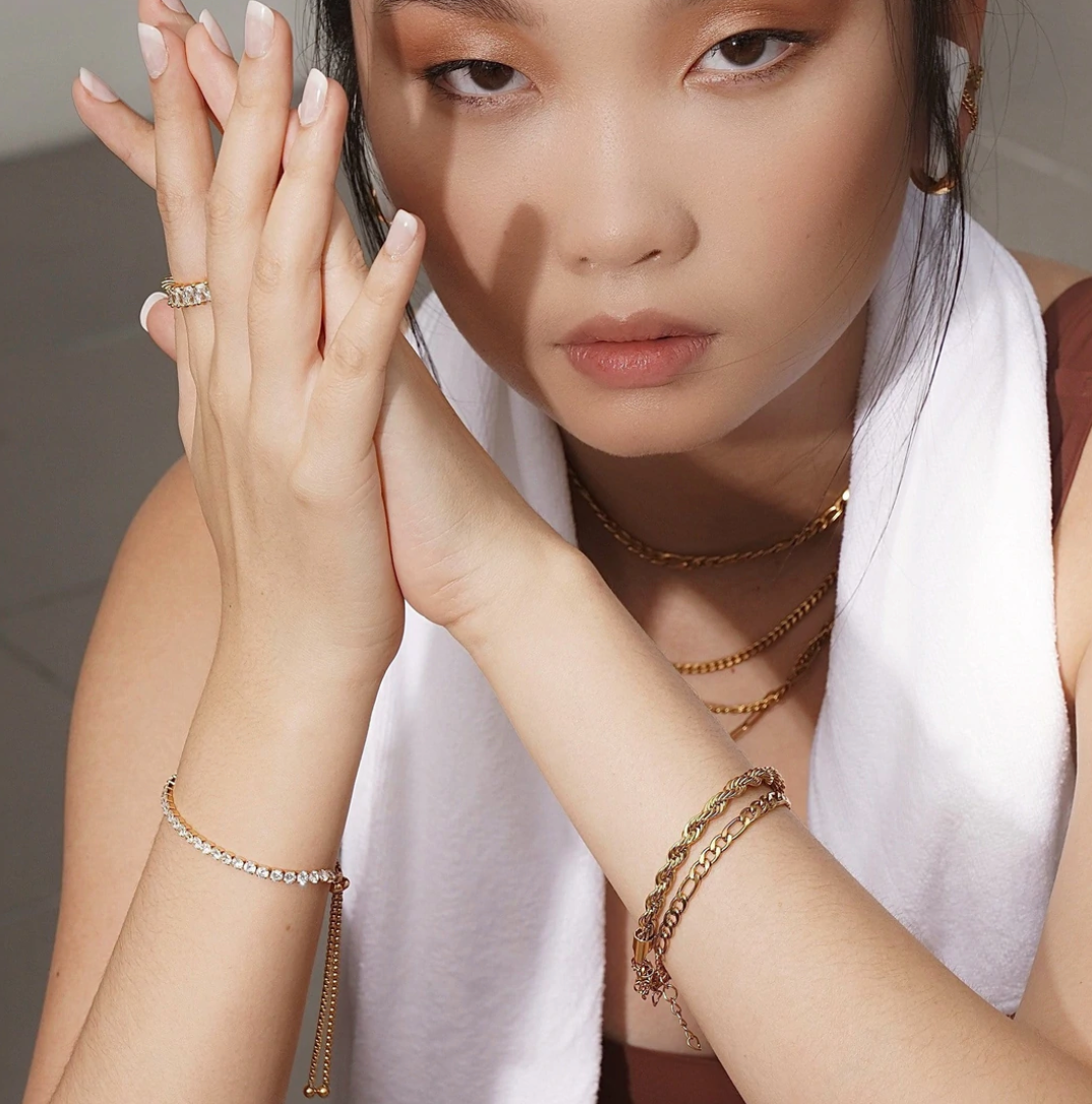 Water resistant 💧 Materials: Stainless steel. Measurements: Adjustable - one size fits most. Closure: Adjustable slider. Allergy Information: Hypoallergenic.
