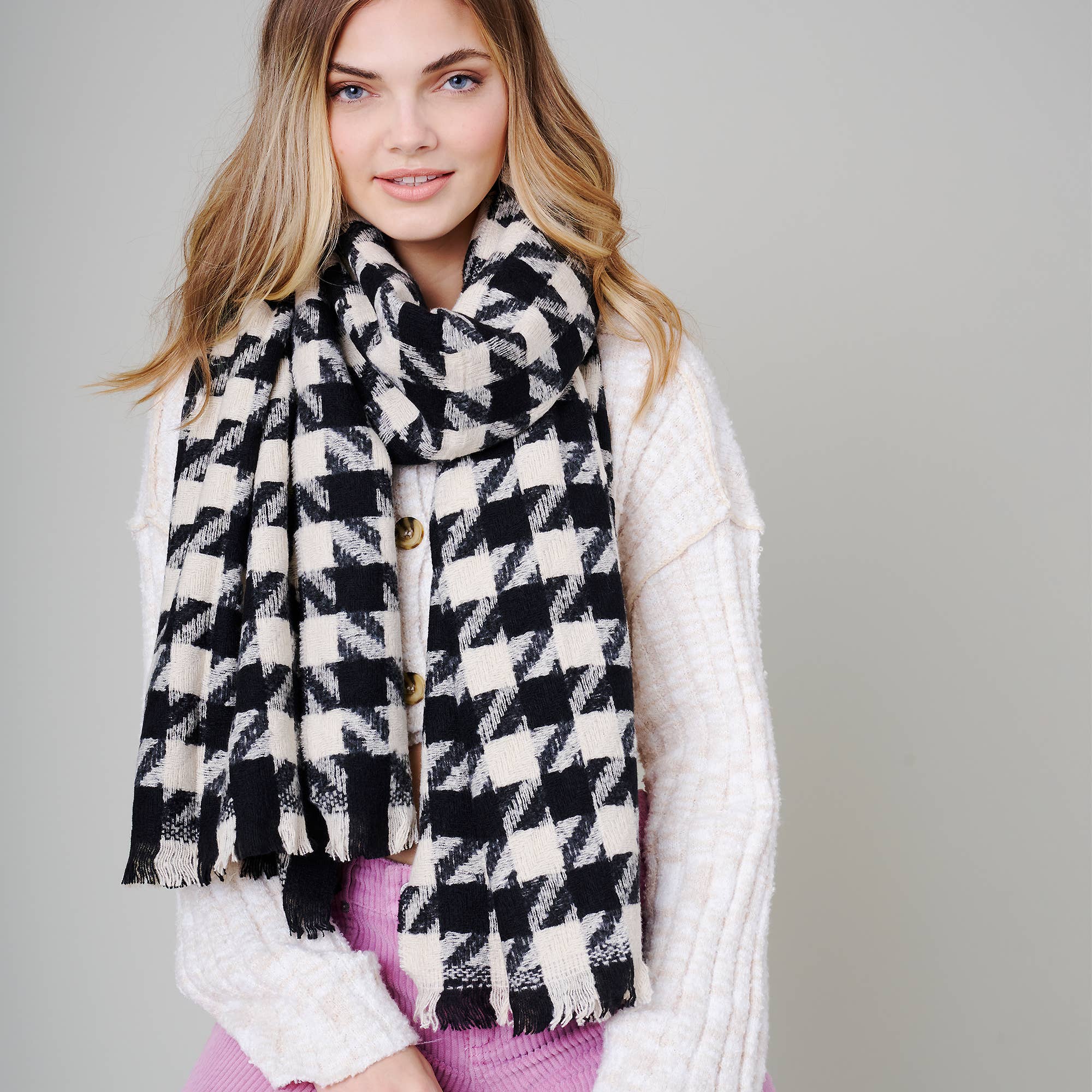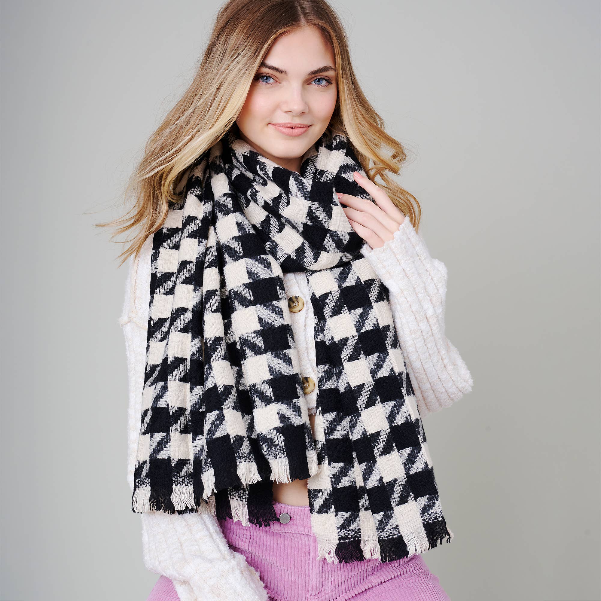 Houndstooth Soft Oblong Scarf: BLACK / ONE SIZE