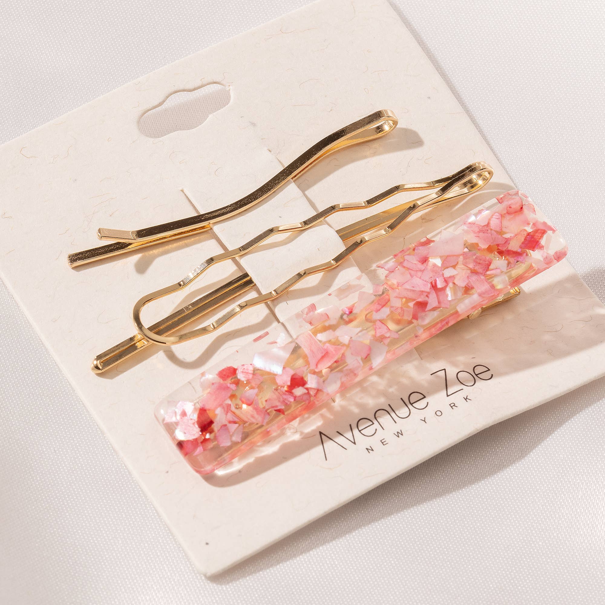 Style No : AZCH346472 Set of 3 assorted hair pin set Approx: 2.5" Material: 100% Alloy Lead Compliant, Nickel Free To prevent tarnish, please avoid wet substances